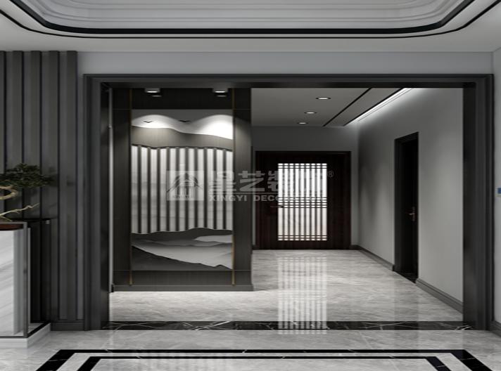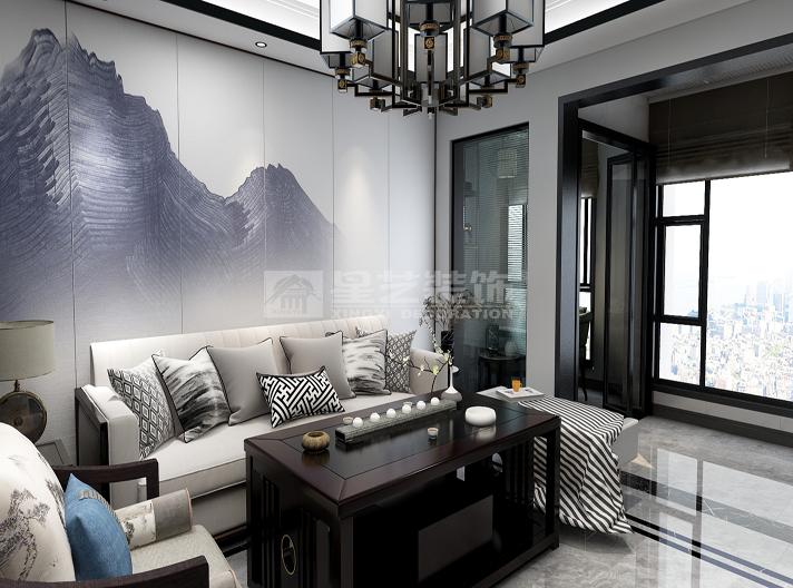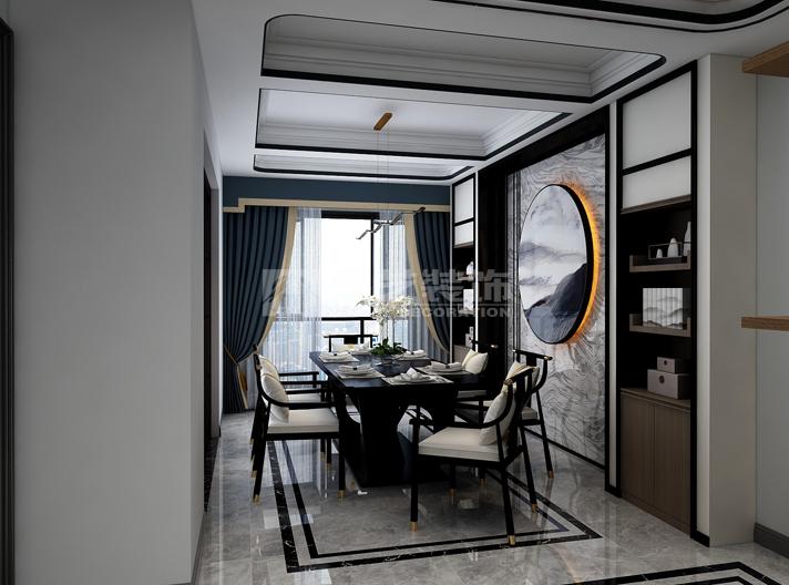 此套采用新中式风格的装饰设计手法,颜色上以深色为主色调,蓝色做点缀。充分体现空间的温馨感,却不失时尚元素。