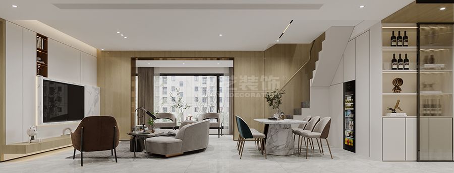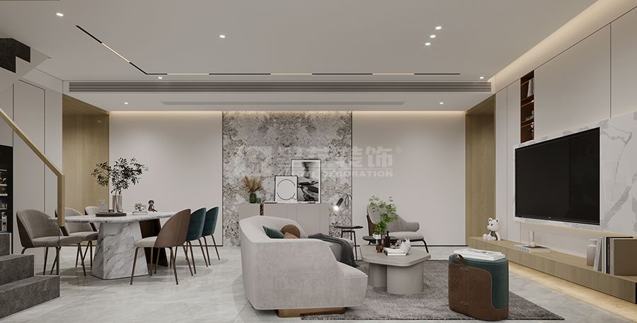 空间组织不再是以房间组合为主,空间的划分也不再局限于硬质墙体,而是更注重会客、餐饮、学习、睡眠等功能空间的逻辑关系通过家具、吊顶、地面材料、陈列品甚至光线的变化来表达不同功能空间的划分,而且这种划分又随着不同的时间段表现出灵活性、兼容性和流动性。