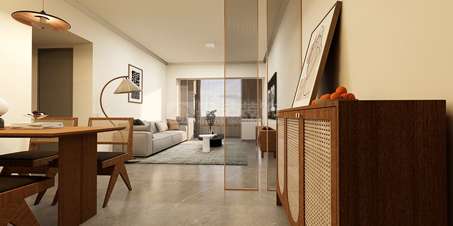 业主喜欢喝茶,风格上现代简约带点原木风,给主人营造温馨的氛围感,同时也使空间色彩多元化