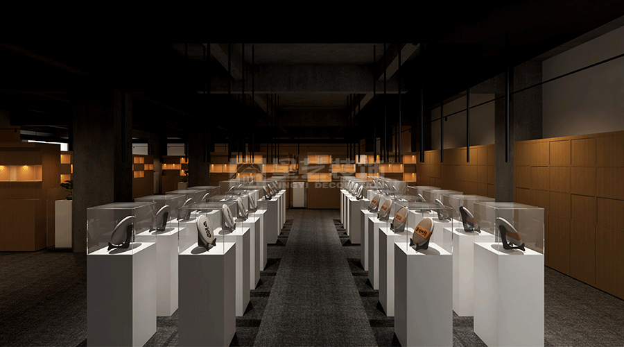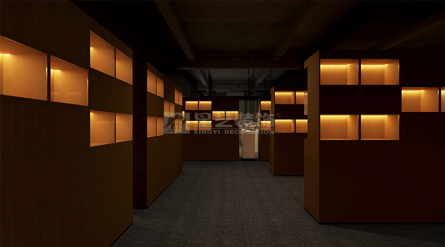 在空间营造上,大量运用木质元素,如木格栅、木展柜等,木质的温润质感契合茶文化的质朴与沉静,传递出自然、亲和的氛围,仿佛能让人嗅到茶叶的清香。灯光设计颇为精妙,暖黄色的灯光从展柜、墙面的灯带中透出,既柔和地照亮了展示的茶品、茶具,又营造出静谧、雅致的氛围,如同茶室中那一缕恰到好处的柔光,烘托出品茶时的闲适与安然。