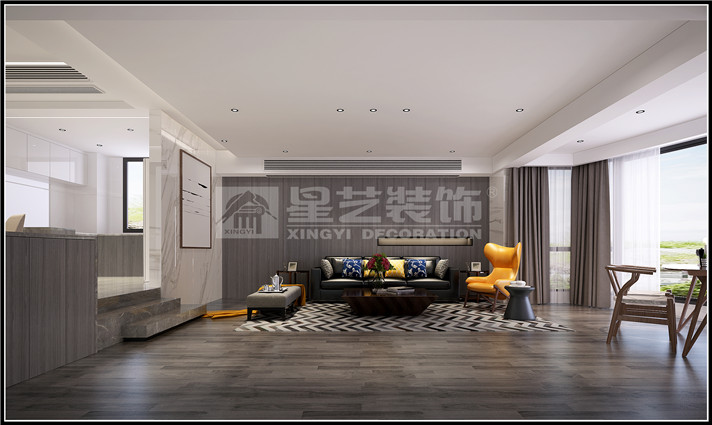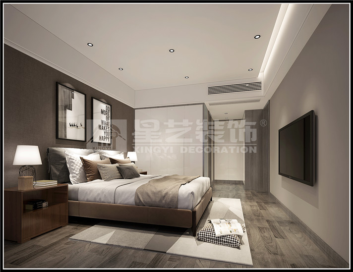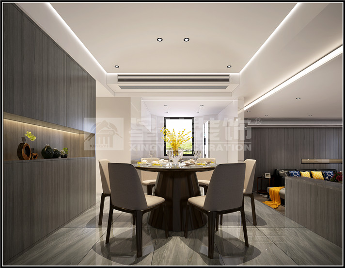 黑白灰风格的装修可谓是深受设计师的喜爱,有点特别 有点可怕,特别的是黑白灰带来的深邃 优雅 宁静的神秘。 设计师采用了大面积留白,通过木饰面为生硬的空间增加了温度,生活需要做减法,设计亦是如此。 客厅主景以白色石材和深色木饰面做完美的配合,巨大落地窗将光线引入客厅,让大量自然光充盈其间,充满呼光与影的室内传达着自然诉求的风格。 灰色大理石错落上深色餐桌,舒雅布艺,表达出干练简洁的空间语言。 纯净感是主卧给人的第一感觉,就像婴儿般无暇的笑容,没有杂质的美好,舒服到人心底里去了,木质的清香深沉,在棉麻的若软中,对比出一种宁静致远的闲适!