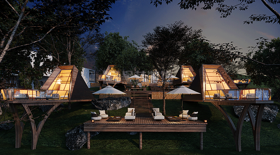 临水而筑,栖湖谧境将湖畔的诗意淋漓呈现。建筑以原生木石为骨,谦逊地融入自然画卷,通透的落地门窗模糊了室内外边界,将潋滟湖光、如黛远山与婆娑树影尽收为流动的背景。晨起推窗,薄雾氤氲中波光跃金;日间闲坐私享露台或临湖茶室,看云影徘徊,听风过林梢、鸟鸣清越;暮色四合时,暖黄的灯光与湖面倒映的杏河交相辉映。室内空间摒弃浮华,以温润的木质、粗粝的石材和柔和的织物构筑宁静基底,低饱和度的色调让心灵沉静。每一处设计皆指向与自然的深度对话——枕水而眠,在轻柔的波浪摇篮曲中入梦;沐风而醒,让湖畔纯净的气息涤荡身心。这里不仅是栖身之所,更是让时间慢流、让心灵重获宁静与归属的诗意栖居。来栖湖谧境,沉浸于湖光山色的自然韵律,书写一段独属于你的湖畔记忆。