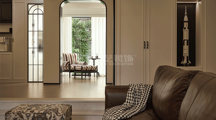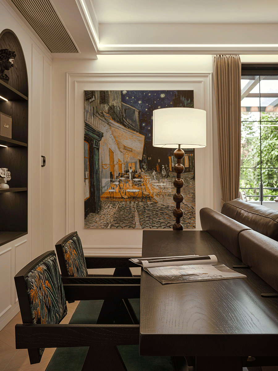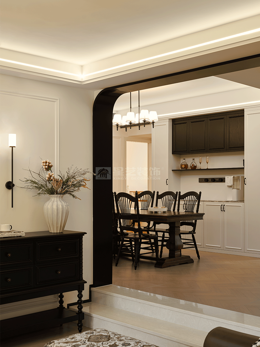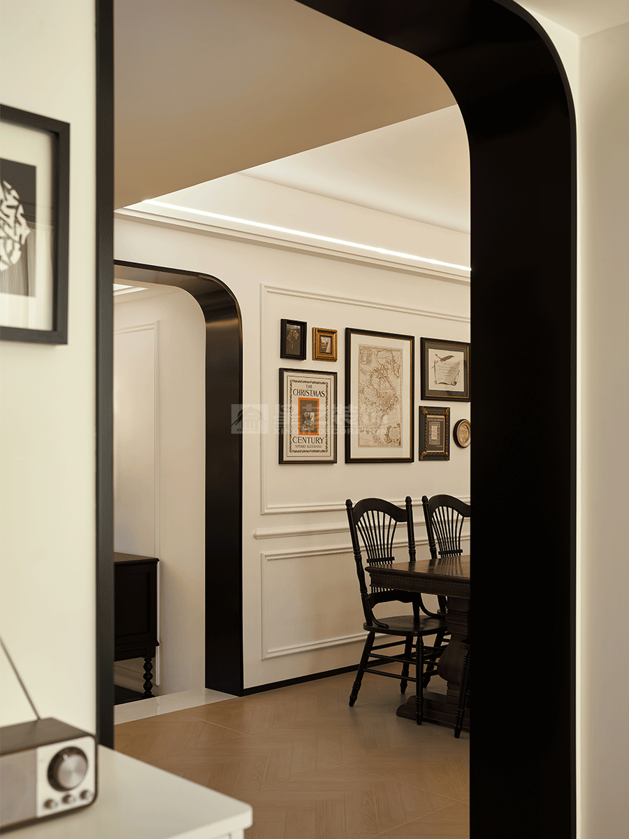 在功能分区上,既保证各区域相对独立,又通过拱形门洞等设计实现视觉连通,让空间富有层次。软装搭配注重细节,花艺、装饰画、摆件等,为空间增添艺术气息与生活温度,整体打造出兼具复古韵味与现代舒适感的居住环境。
