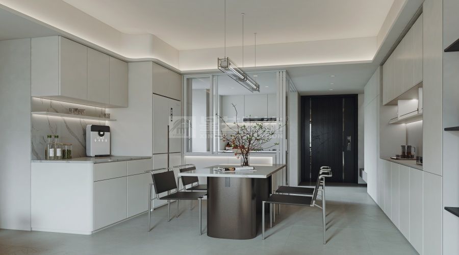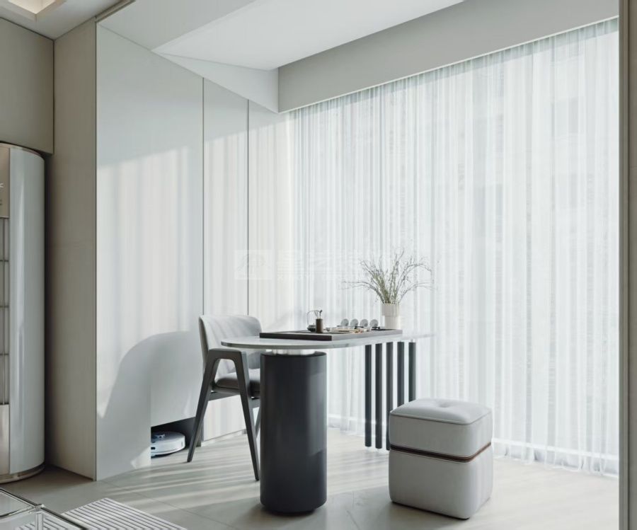 本案以“少即是多”为核心理念,塑造一个冷静、理性且充满现代感的居住空间。整体采用黑、白、灰作为主基调,摒弃多余的装饰与色彩,追求极致简约与内在的秩序感。 空间布局上强调开放与通透感,通过利落的直线条和几何体块进行功能划分。材质选择上,大面积的留白墙面与冷静的灰色艺术涂料奠定基调,搭配深色哑光木饰面、冷峻的黑钢、以及天然石材的粗犷肌理,在触感与视觉上形成丰富而克制的层次变化。 光影是设计的灵魂。我们利用大面积的落地窗引自然光入室,并辅以精准的点光源与线性灯光,勾勒出空间的轮廓,营造出静谧而富有戏剧性的氛围。家具软装同样遵循简约原则,选用造型独特、线条流畅的经典单品,仅在局部以一抹绿植或一件抽象艺术品作为点缀,为冷静的空间注入一丝生机与人文气息。 最终,这个空间不仅是一个物理居所,更是一种内敛、从容生活态度的表达,在至简之境中回归本真。