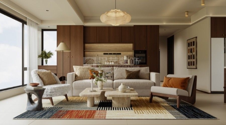 130平奶油原木风,烟火里的润物细无声,暖调原木家,素色墙面搭配同色地砖,和木质元素自然又温暖
